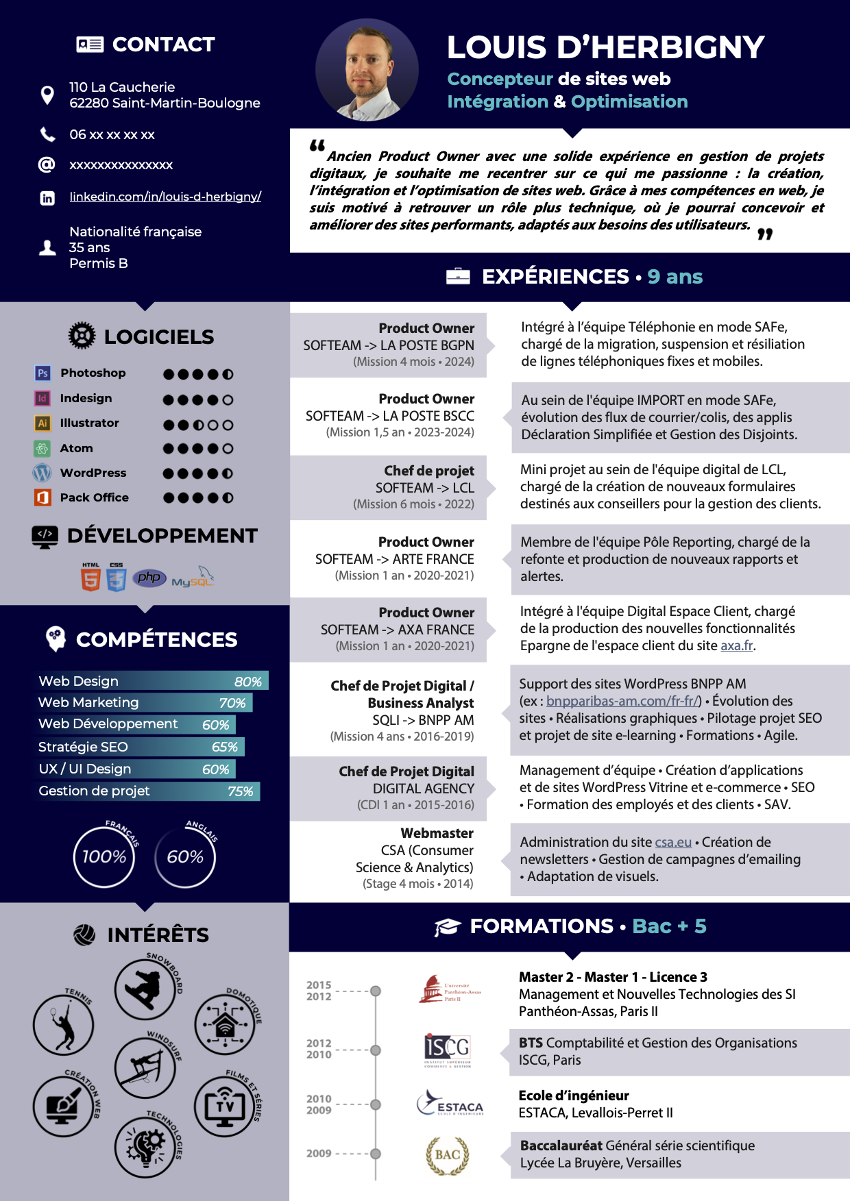 Je m’appelle Louis d’Herbigny, passionné par la création web depuis plus de 10 ans. Spécialisé WordPress, je conçois des sites sur mesure, optimisés, rapides et au design soigné, incluant des solutions e-commerce performantes. J’interviens sur l’ensemble du processus : structure, UX, SEO, performance, responsive, accessibilité.